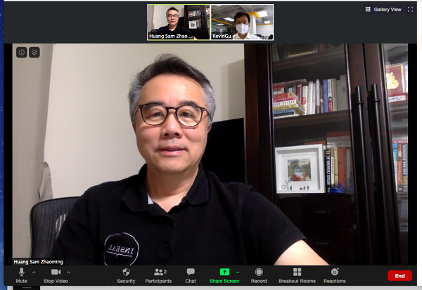 图:3499拉斯维加斯官网科技集团高级副总经理Sam Huang远程连线3499拉斯维加斯官网科技集团海外事业部销售总监顾德