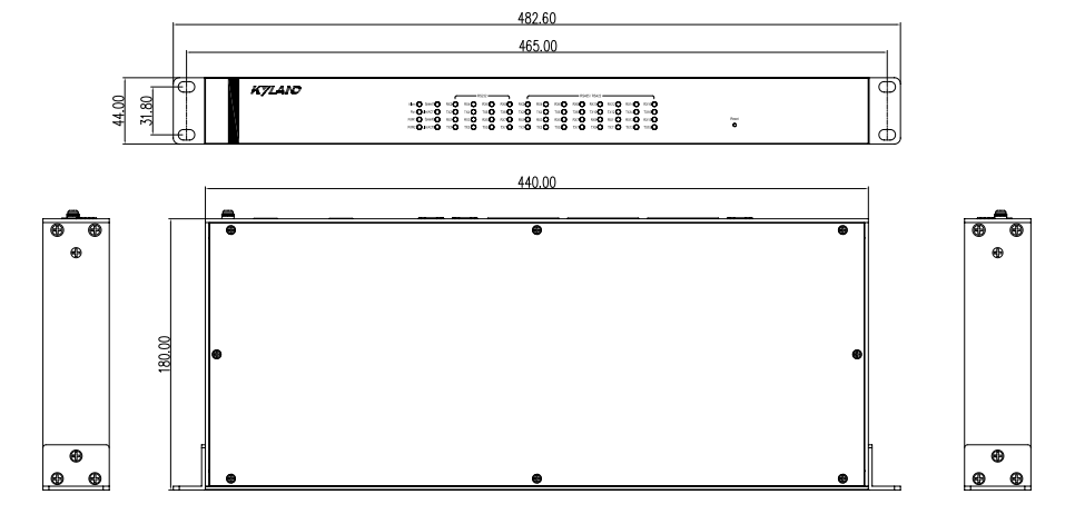 | 机械结构 | 外壳:金属材质 尺寸:483mm×44mm×200mm(W×H×D) 包装尺寸:570mm×325mm×445mm 散热方式:自然冷却,无风扇 防护等级:IP40 安装方式:19英寸1U机架式 |